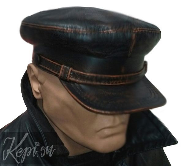 Модель 161. Фуражка кожаная состаренная ЧК СССР. Цвет рыже-коричневый с винтажным эффетом. При изготовлении фуражки используется высококачественная натуральная кожа (magic leather) с эфектом состаренности. Износостойка и практична, прошла испытания огнём, водой и спиртом.