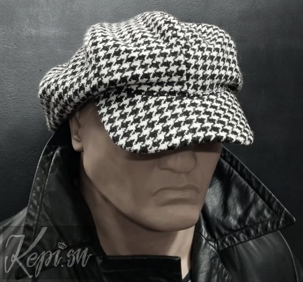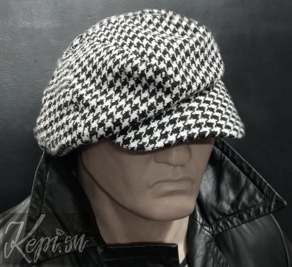 Модель 319.  Кепка восьмиклинка в американском стиле, объёмнее чем обычные кепки. Качественная итальянская дегкая ткань головного убора, подклядка вискоза. Цвет черно белый. Стильная, классическая шапка амер на осень и весну. Сейчас можно купить эту кепи по цене со скидкой.