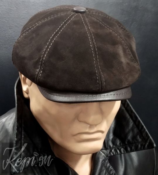Описание Кепка кожаная восьмиклинка Бурый, шапка мужская
