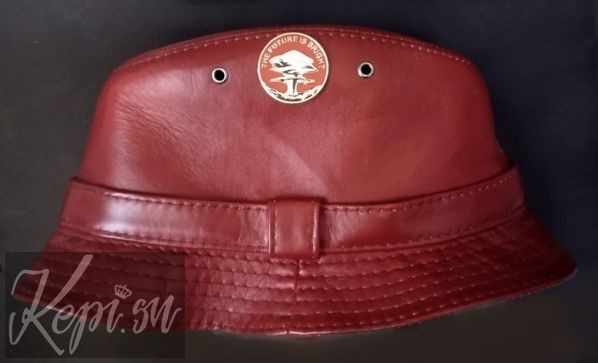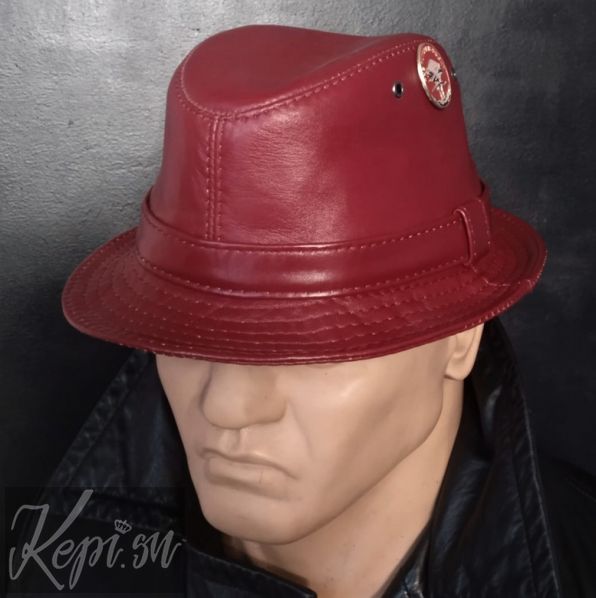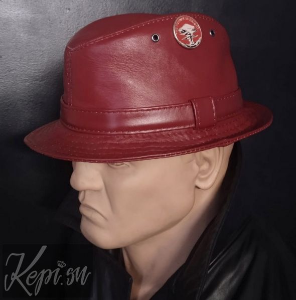 Модель 79-9.  Шляпа кожаная Яркое будущее. Натуральная кожа 100%, подкладка вискоза. Стильная шляпа из мягкой качественной кожи. Цвет темно красный, бордовый. Значок остегивается. Сейчас вы можете купить эту шляпу со скидкой.
